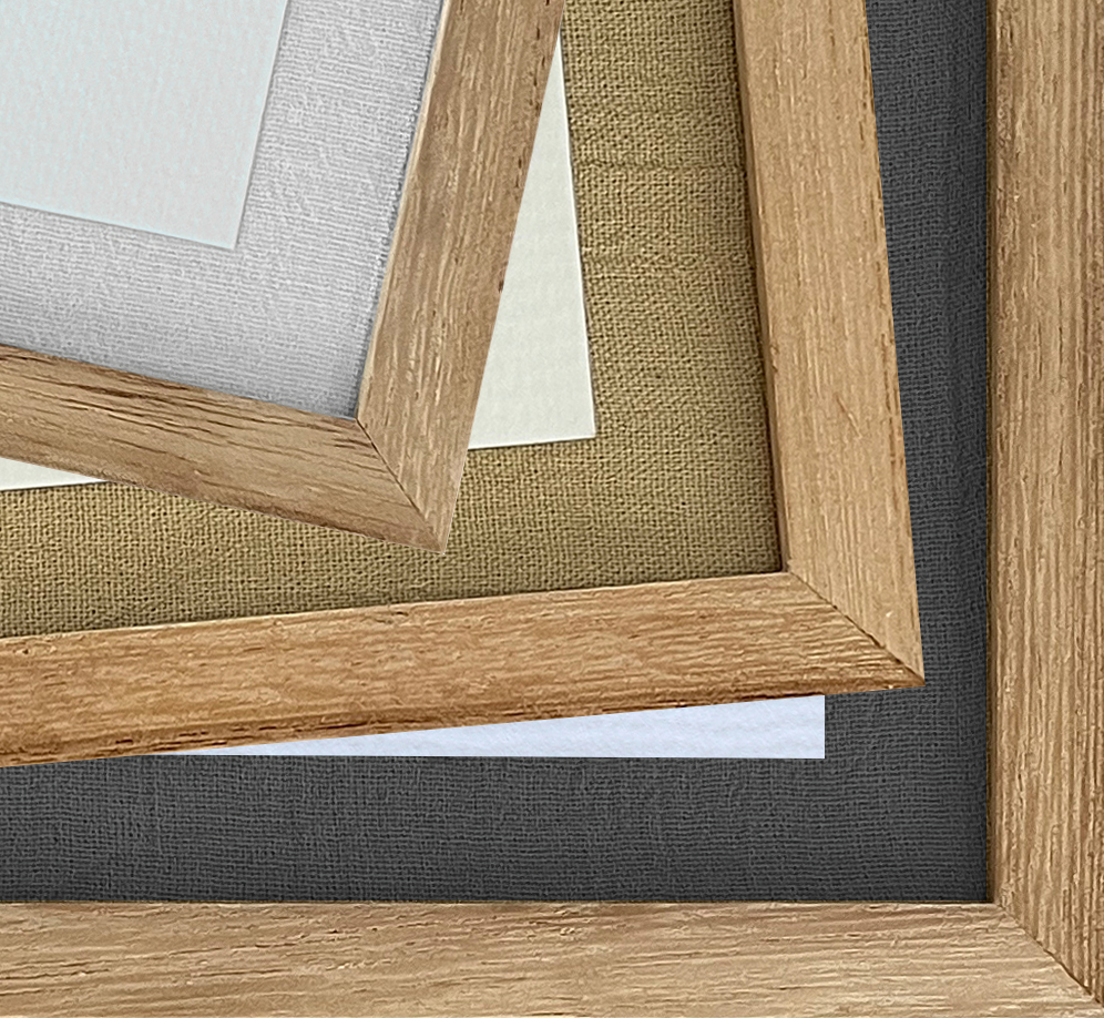 Enmarcada con marco de kiri, vidrio, sobre base de tussor, color a elección (natural, beige o gris topo).