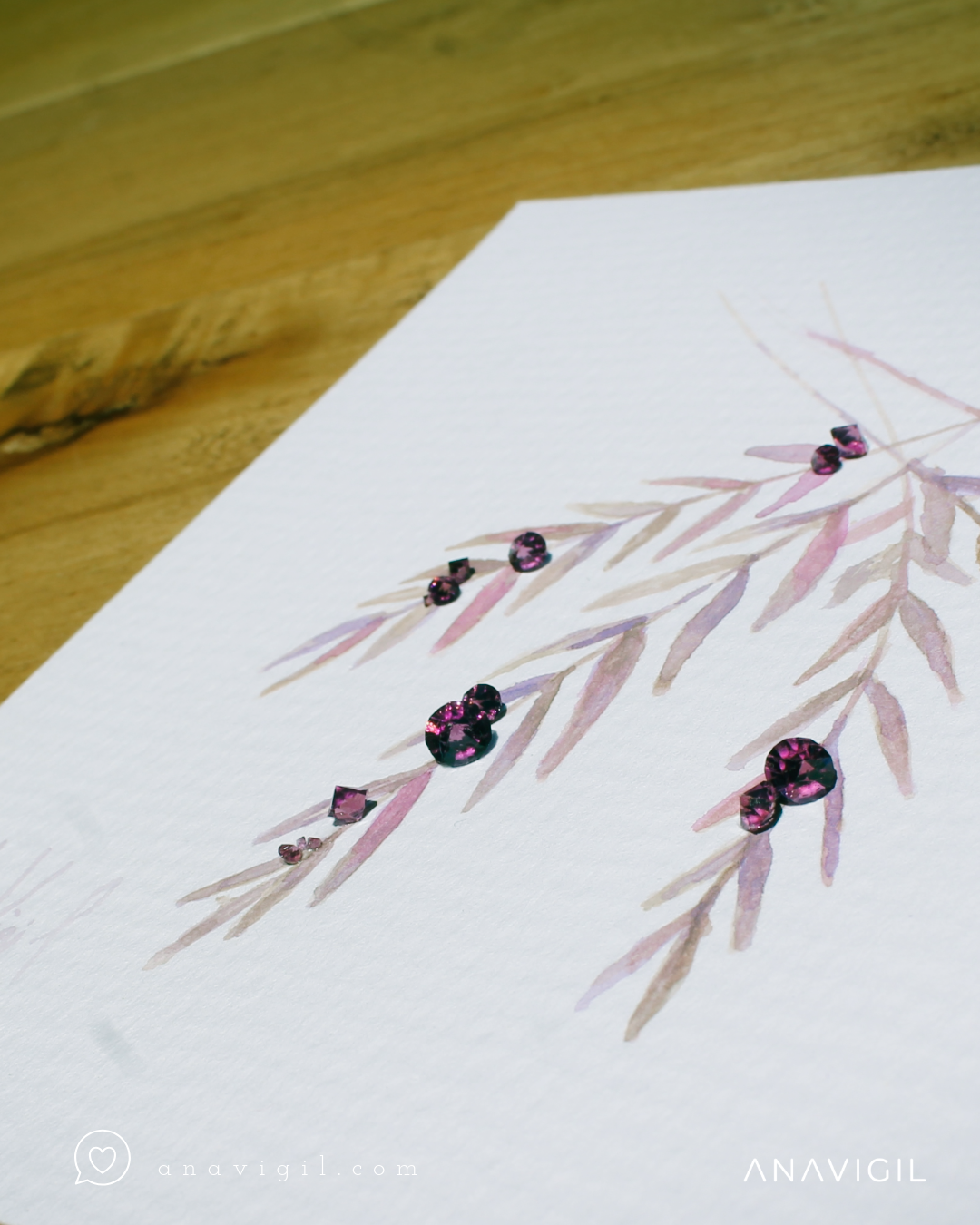Técnica: mixta, acuarela con cristales austríacos
