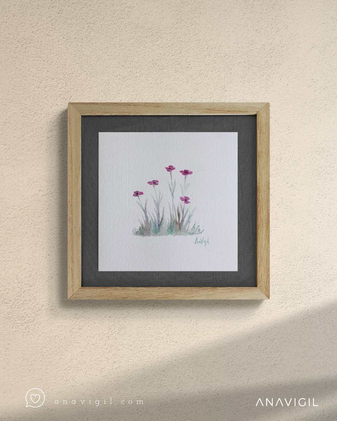 Enmarcada con marco de kiri, vidrio, sobre base de tussor, color a elección (natural, beige o gris topo).