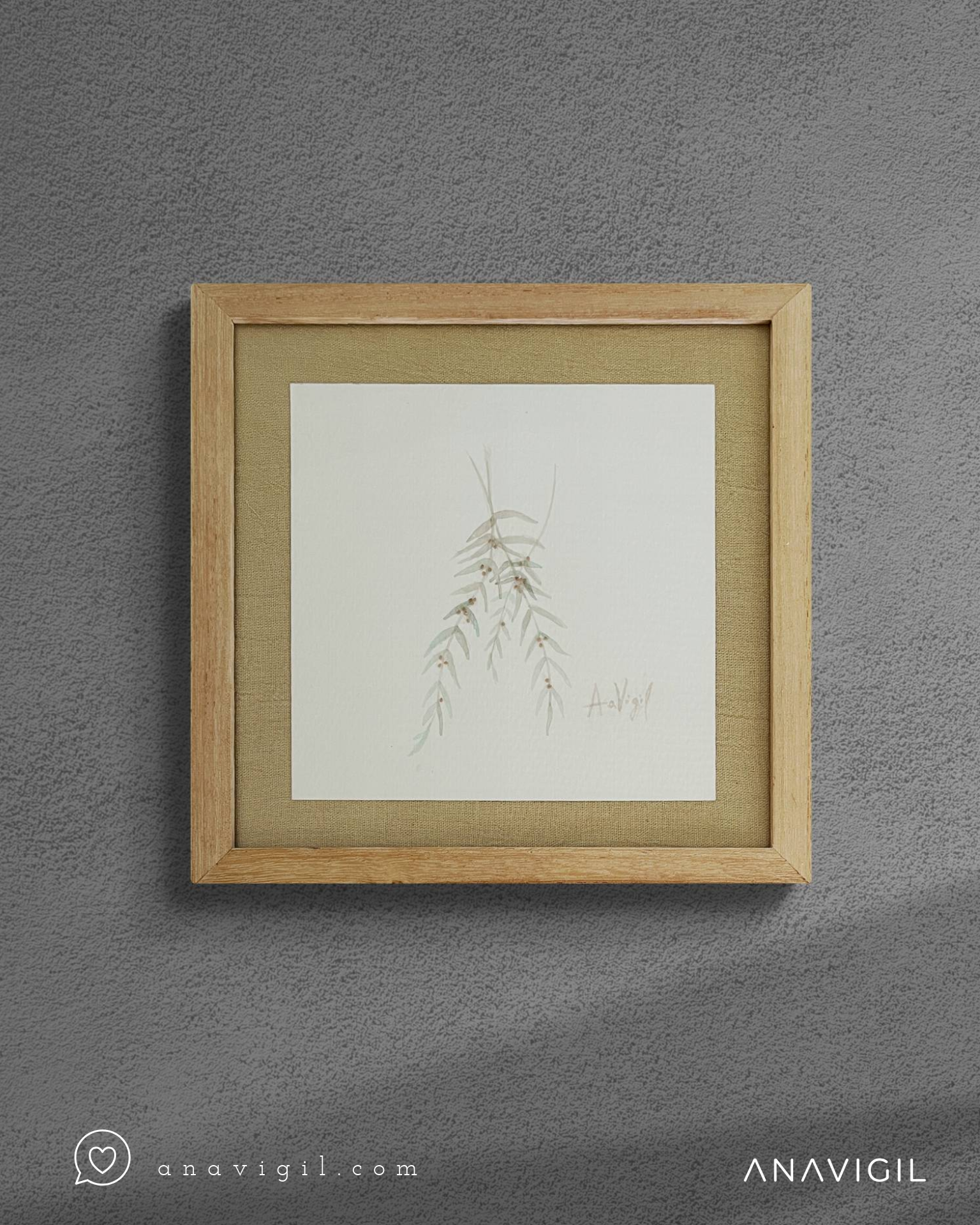 Enmarcada con marco de kiri, vidrio, sobre base de tussor, color a elección (natural, beige o gris topo).