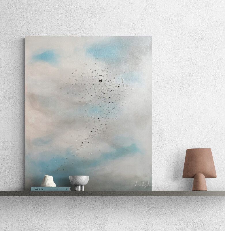 Técnica: mixta, acrílico con textura sobre lienzo con cristales austríacos