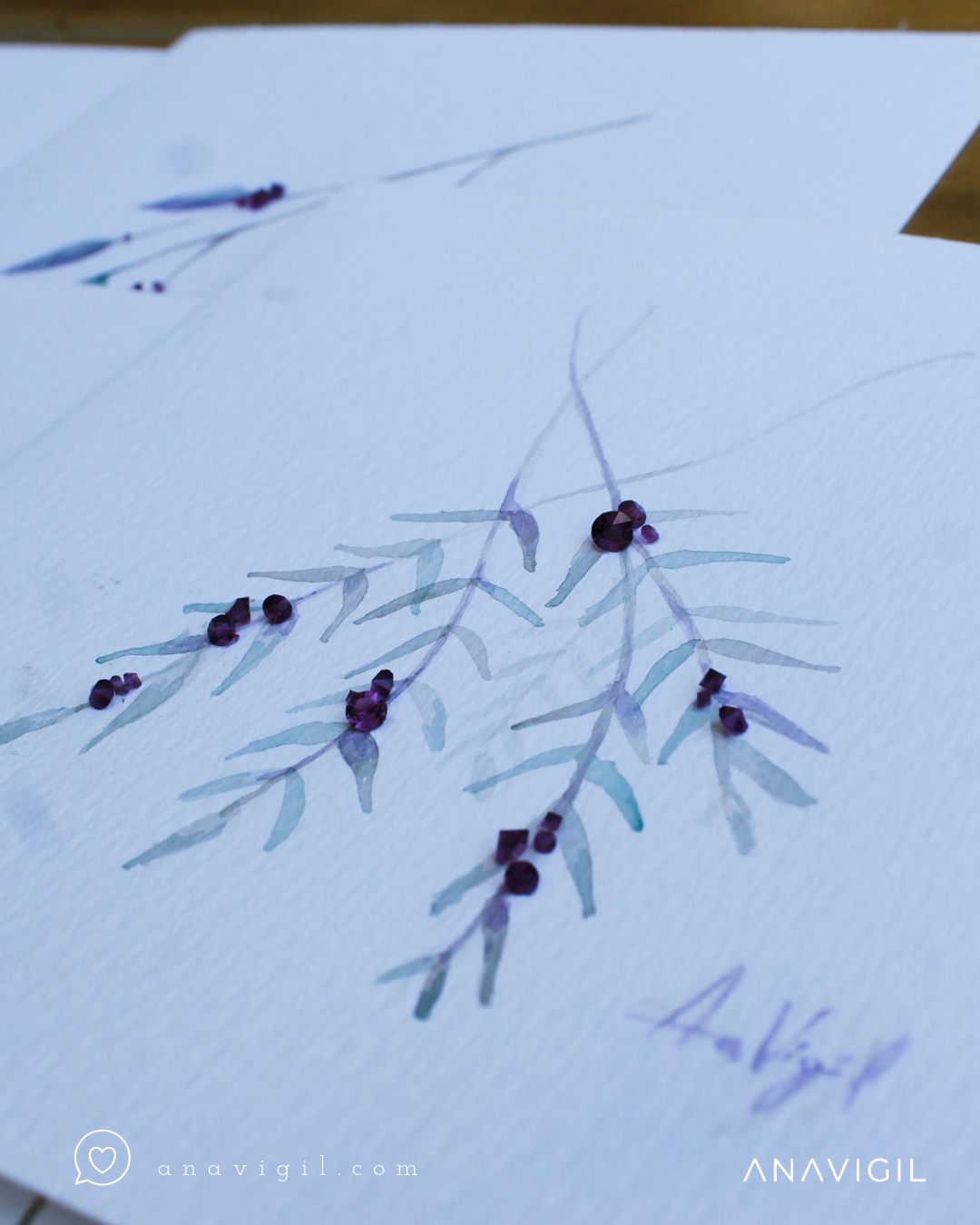 Técnica: mixta, acuarela con cristales austríacos
