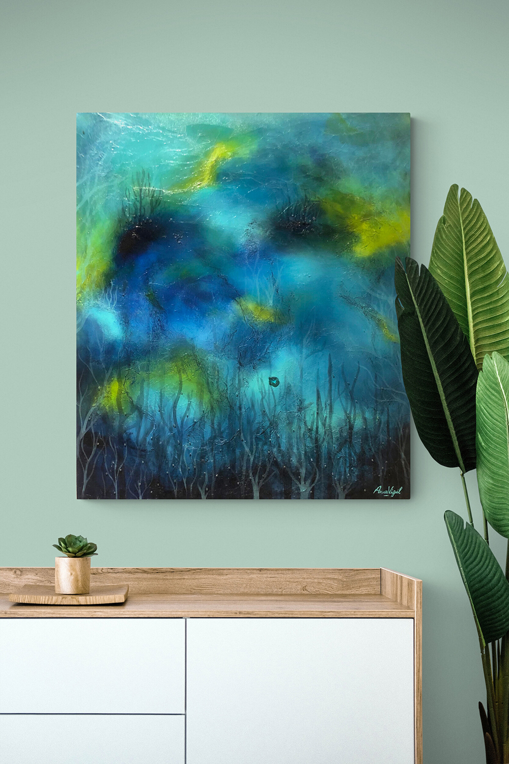Técnica: mixta, acrílico sobre lienzo con cristales austríacos