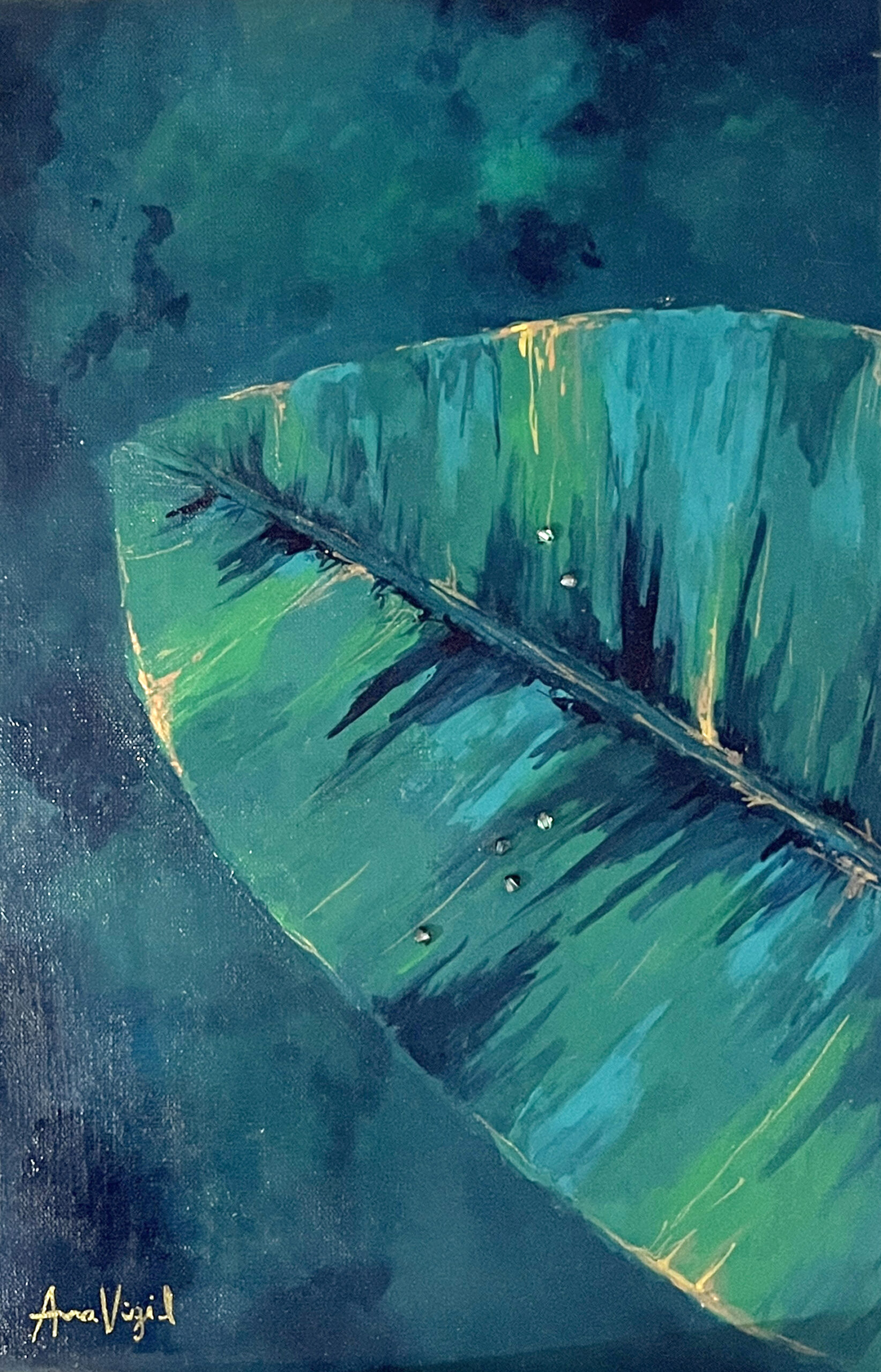 Cada obra nace desde la intuición: capas de color que se superponen hasta lograr una atmósfera fresca, limpia y expansiva.